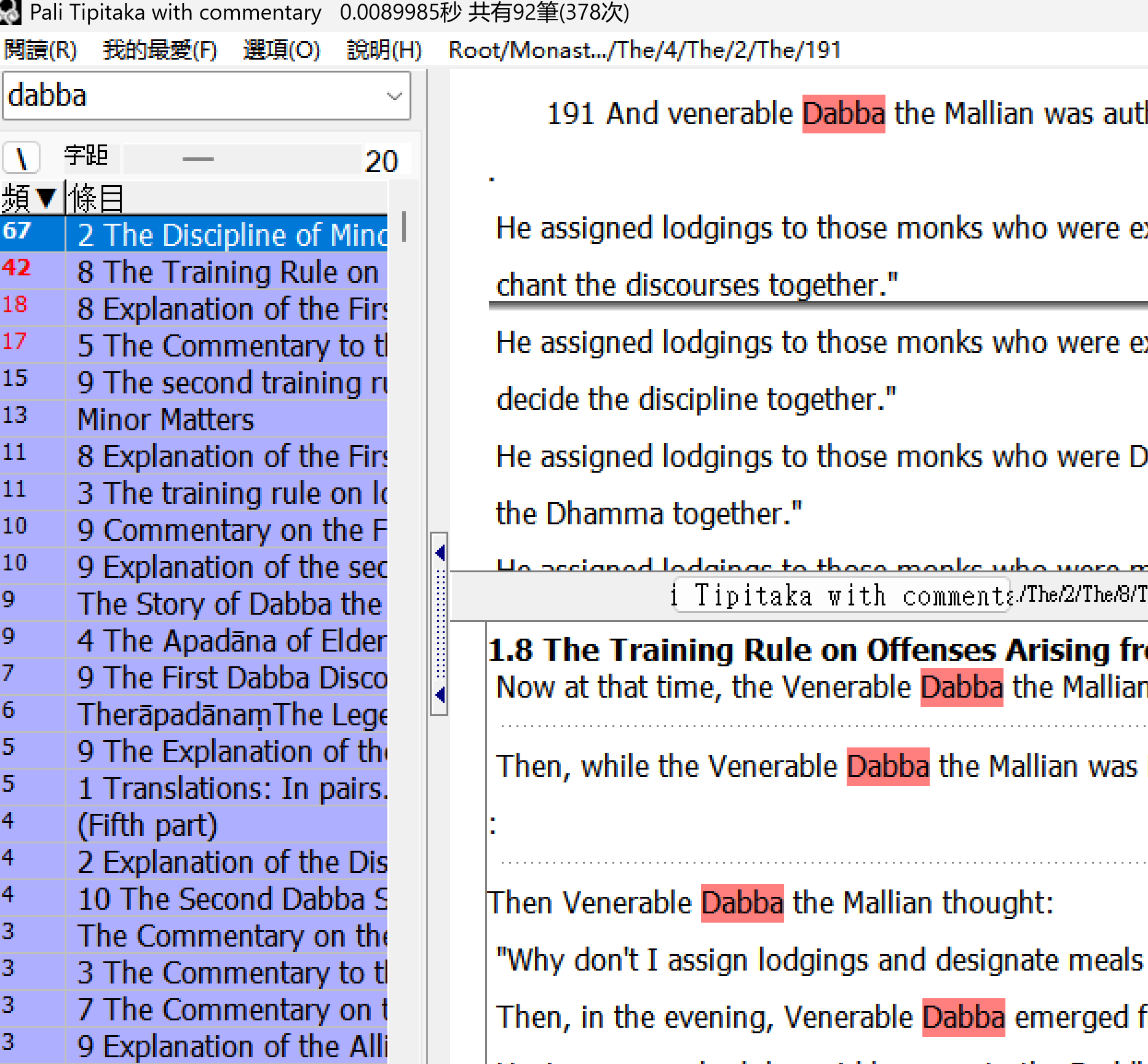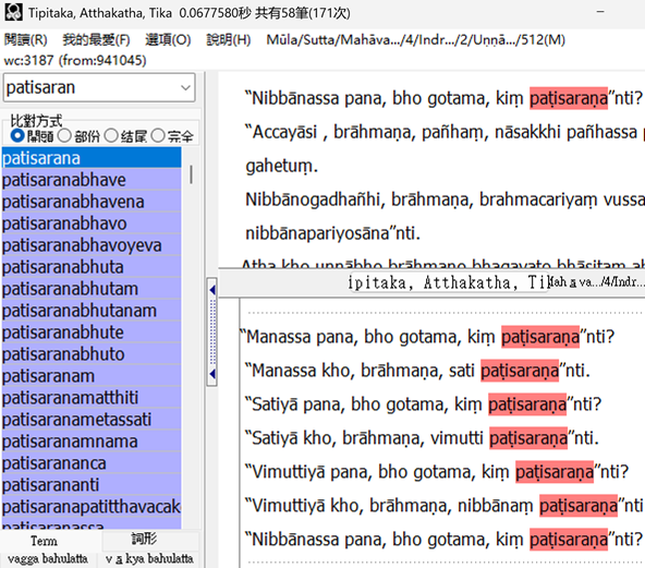 执行画面四:部份搜尋巴利長詞